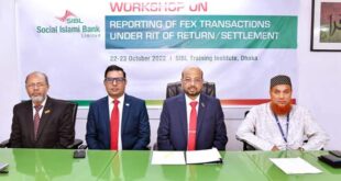 সোশ্যাল ইসলামী ব্যাংকে “আরআইটি এর মাধ্যমে বৈদেশিক মুদ্রার লেনদেন রিপোর্টিং” সংক্রান্ত দুইদিনব্যাপী কর্মশালা ২২ অক্টোবর উদ্বোধন করা হয়। ব্যাংকের অতিরিক্ত ব্যবস্থাপনা পরিচালক জনাব আবু রেজা মোঃ ইয়াহিয়া প্রধান অতিথি হিসেবে কর্মশালাটির উদ্বোধন করেন। এ সময় বাংলাদেশ ব্যাংকের পরিচালক (পরিসংখ্যান) ড. মুহাম্মদ আমির হোসাইন, সোশ্যাল ইসলামী ব্যাংকের ইন্টারন্যাশনাল ডিভিশনের প্রধান জনাব …
