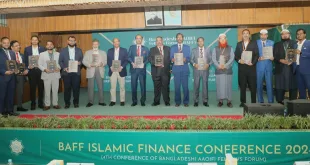 বাহরাইন ভিত্তিক ইসলামি ব্যাংকিং ও অর্থায়ন বিষয়ক মানদন্ড প্রণয়নকারী সংস্থা ‘অ্যাকাউন্টিং অ্যান্ড অডিটিং অর্গানাইজেশন ফর ইসলামিক ফাইন্যান্সিয়াল ইনস্টিটিউশন-আওফি’র ফেলোদের সংগঠন বাংলাদেশী আওফি ফেলোজ ফোরাম (বাফ)-এর চতুর্থ ইসলামি অর্থায়ন সম্মেলন ২৪ ফেব্রুয়ারি ২০২৪, শনিবার মিরপুরের বিআইবিএম মিলনায়তনে অনুষ্ঠিত হয়। দিনব্যাপী এ সম্মেলনের উদ্বোধনী অধিবেশনে প্রধান অতিথি হিসেবে উপস্থিত ছিলেন বিআইবিএম-এর চেয়ার …